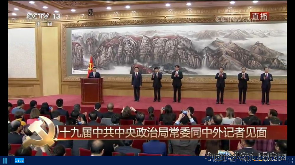 党的十九届一中全会选举习近平、李克强、栗战书、汪洋、王沪宁、赵乐际、韩正为中央政治局常委