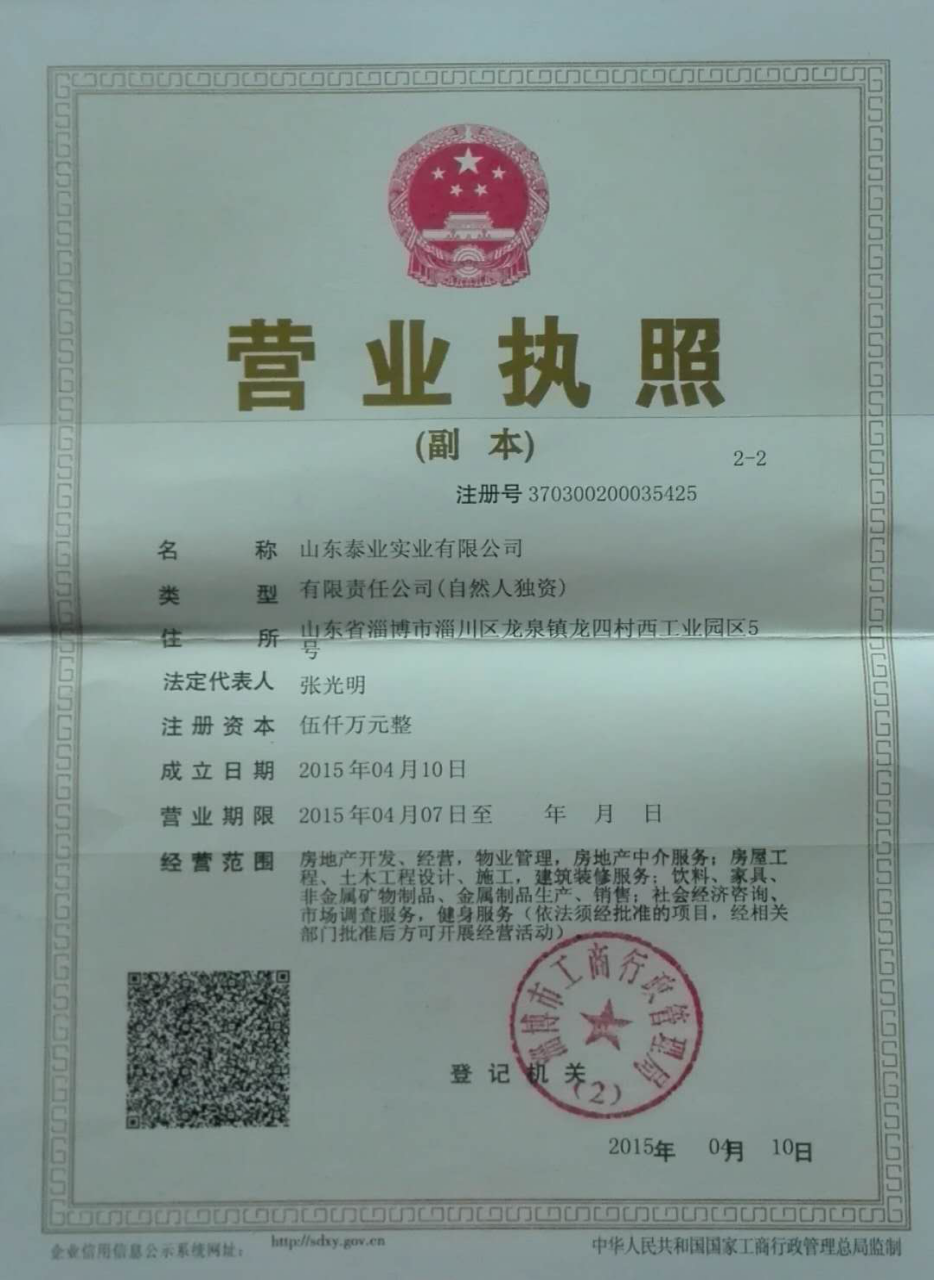 注册地址山东省淄博市淄川区龙泉镇龙四村西工业园区5号