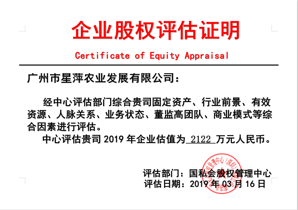 中心认定该企业股权估值为2122万元人民币,立项托管时间为:2019年03月16日.托管代码为307090. 成立时间:2014年05月29日 营业项目:园林绿化工程服务;景观和绿地设施工程施工;花草树木修整服务。