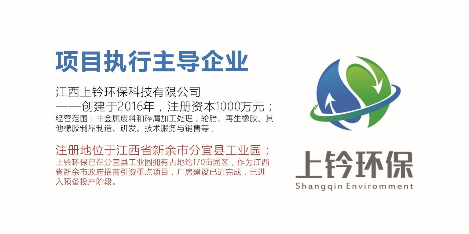 江西上钤环保是在中国生态文明研促会、中国轮胎循环利用协会、中国环境保护产业协会支持下,联合北京化工大学材料科学与工程学院,在江西分宜县建立一个“国家级”4.0工业体系废旧橡胶回收处理及循环利用产业园。